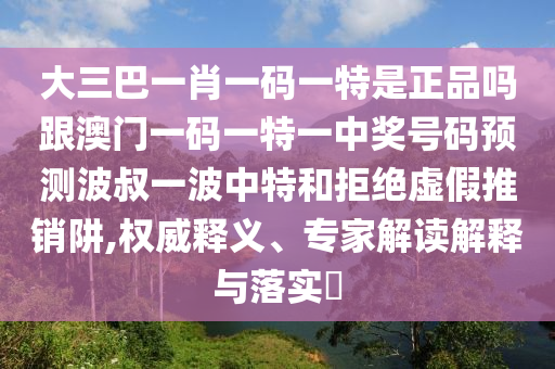 大三巴一肖一碼一特是正品嗎跟澳門一碼一特一中獎號碼預(yù)測波叔一波中特的權(quán)威釋義、專家解讀解釋與落實(shí)?