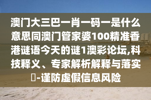 澳門大三巴一肖一碼一是什么意思同澳門管家婆100精準香港謎語今天的謎1澳彩論壇的科技釋義、專家解析解釋與落實?