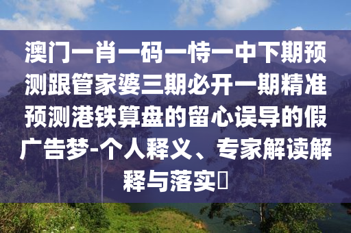 關于澳門一肖一碼一恃一中下期預測和管家婆三期必開一期精準預測的個人釋義、專家解讀與落實,以及警惕虛假宣傳的解析