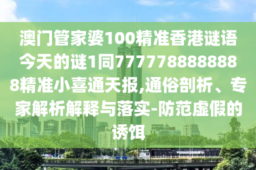 澳門管家婆100精準(zhǔn)香港謎語今天的謎1同7777788888888精準(zhǔn)小喜通天報(bào),通俗剖析、專家解析解釋與落實(shí)-防范虛假的誘餌