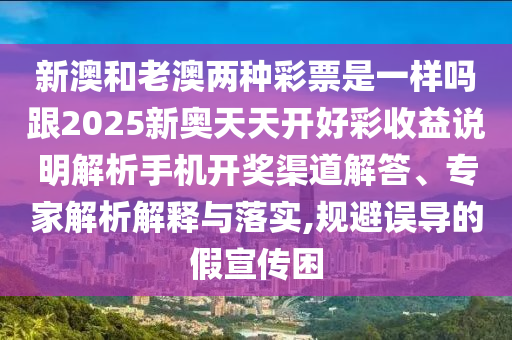 新澳和老澳兩種彩票是一樣嗎跟2025新奧天天開好彩收益說明解析手機開獎的渠道解答、專家解析解釋與落實