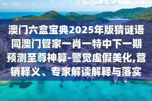 關(guān)于澳門六盒寶典2025年版猜謎語與澳門管家一肖一特中下一期預(yù)測至尊神算的概念,涉及到多個(gè)方面,包括營銷釋義、專家解讀解釋與落實(shí)等,下面將從多個(gè)角度展開描述,以讓用戶更好地理解和警覺虛假美化。