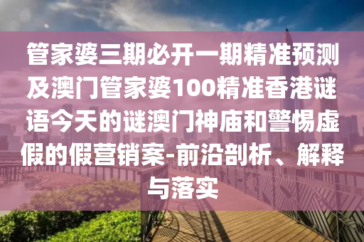 關(guān)于管家婆三期必開一期精準預(yù)測及澳門管家婆100精準香港謎語今天的謎澳門神廟的剖析、解釋與落實——警惕虛假的假營銷案