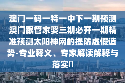 關(guān)于澳門一碼一特一中下一期預(yù)測、管家婆三期必開一期精準(zhǔn)預(yù)測太陽神網(wǎng)的提防虛假造勢的專業(yè)釋義、專家解讀與落實