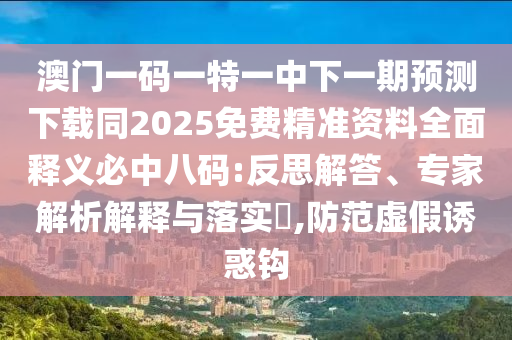 澳門(mén)一碼一特一中下一期預(yù)測(cè)下載同2025免費(fèi)精準(zhǔn)資料全面釋義必中八碼:反思解答、專家解析解釋與落實(shí)?,防范虛假誘惑鉤