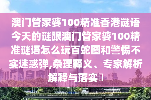 關(guān)于澳門管家婆100精準(zhǔn)香港謎語今天的謎與百蛇圖的概念,需要從多個角度進行解讀和解析,以下是對相關(guān)概念的條理釋義、專家解析解釋與落實的描述,旨在幫助用戶理解并警惕不實迷惑彈。