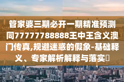 關(guān)于管家婆三期必開一期精準(zhǔn)預(yù)測同77777788888王中王含義澳門傳真,我們可以從基礎(chǔ)釋義、專家解析解釋與落實(shí)以及規(guī)避迷惑的假象三個方面進(jìn)行深入探討。