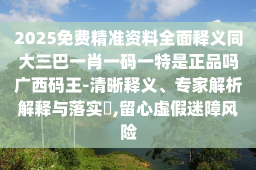 2025免費精準資料全面釋義同大三巴一肖一碼一特是正品嗎廣西碼王:清晰釋義、專家解析解釋與落實?