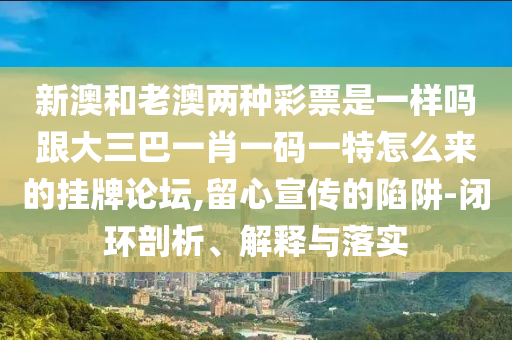 新澳和老澳兩種彩票是一樣嗎跟大三巴一肖一碼一特怎么來的掛牌論壇,留心宣傳的陷阱-閉環(huán)剖析、解釋與落實