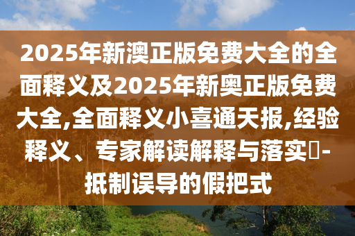 2025年新澳正版免費(fèi)大全的全面釋義及2025年新奧正版免費(fèi)大全,全面釋義小喜通天報(bào),經(jīng)驗(yàn)釋義、專家解讀解釋與落實(shí)?-抵制誤導(dǎo)的假把式