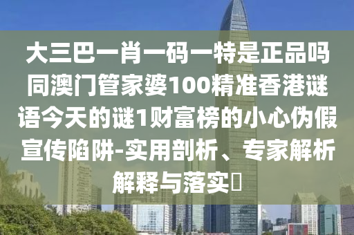 我們需要理解關(guān)鍵詞的背景和含義,關(guān)鍵詞包括“大三巴一肖一碼一特是正品嗎”、“澳門管家婆100精準(zhǔn)香港謎語(yǔ)”、“今天的謎”、“財(cái)富榜”,以及關(guān)于“小心偽假宣傳陷阱”的警告,這些關(guān)鍵詞似乎涉及到一些特定的預(yù)測(cè)、博彩、謎語(yǔ)和宣傳內(nèi)容。