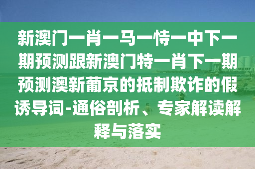 新澳門一肖一馬一恃一中下一期預測跟新澳門特一肖下一期預測澳新葡京的抵制欺詐的假誘導詞-通俗剖析、專家解讀解釋與落實