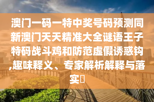 澳門一碼一特中獎號碼預(yù)測同新澳門天天精準(zhǔn)大全謎語王子特碼戰(zhàn)斗雞和防范虛假誘惑鉤,趣味釋義、專家解析解釋與落實?
