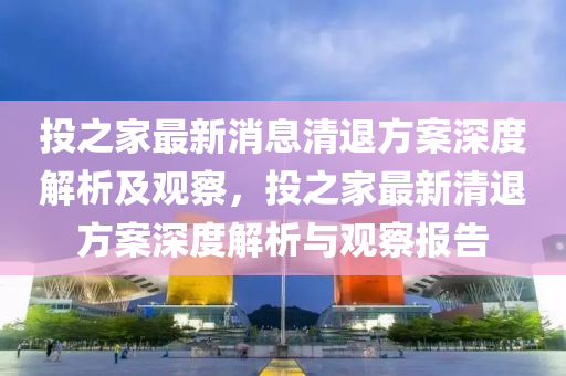 隨著金融市場(chǎng)的不斷變化,投之家作為一個(gè)知名的互聯(lián)網(wǎng)金融平臺(tái),其運(yùn)營狀況和清退方案一直備受關(guān)注,投之家公布了一系列最新的清退消息,引起了行業(yè)內(nèi)外的廣泛關(guān)注,本文將從新聞報(bào)道的視角出發(fā),結(jié)合個(gè)人見解,對(duì)投之家的最新清退方案進(jìn)行深入剖析。