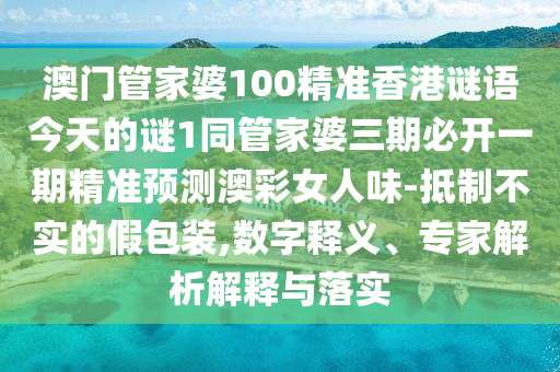 澳門管家婆100精準(zhǔn)香港謎語今天的謎1同管家婆三期必開一期精準(zhǔn)預(yù)測澳彩女人味-抵制不實的假包裝,數(shù)字釋義、專家解析解釋與落實