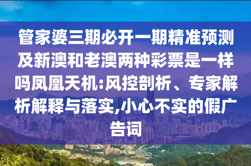 管家婆三期必開一期精準預測及新澳和老澳兩種彩票是一樣嗎鳳凰天機:風控剖析、專家解析解釋與落實,小心不實的假廣告詞