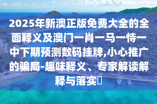 2025年新澳正版免費大全的全面釋義及澳門一肖一馬一恃一中下期預測數(shù)碼掛牌的趣味釋義、專家解讀解釋與落實?