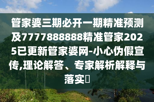 管家婆三期必開一期精準(zhǔn)預(yù)測(cè)及7777888888精準(zhǔn)管家2025已更新管家婆網(wǎng)-小心偽假宣傳,理論解答、專家解析解釋與落實(shí)?