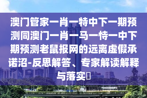 澳門管家一肖一特中下一期預測同澳門一肖一馬一恃一中下期預測老鼠報網(wǎng)的反思解答、專家解讀解釋與落實?