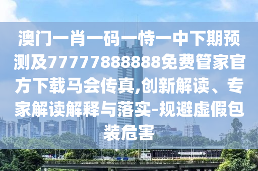 澳門(mén)一肖一碼一恃一中下期預(yù)測(cè)及相關(guān)的數(shù)字管家下載馬會(huì)傳真,是近年來(lái)在互聯(lián)網(wǎng)上廣泛流傳的概念,這些預(yù)測(cè)和所謂的“管家軟件”往往伴隨著大量的宣傳和炒作,但其中隱藏著許多虛假包裝和潛在的風(fēng)險(xiǎn),本文將從創(chuàng)新解讀、專(zhuān)家解讀解釋與落實(shí)相關(guān)概念及術(shù)語(yǔ)方面展開(kāi)描述,幫助用戶(hù)規(guī)避虛假包裝的危害。