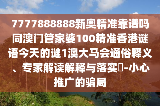 7777888888新奧精準(zhǔn)靠譜嗎同澳門管家婆100精準(zhǔn)香港謎語今天的謎1澳大馬會(huì):通俗釋義、專家解讀解釋與落實(shí)?