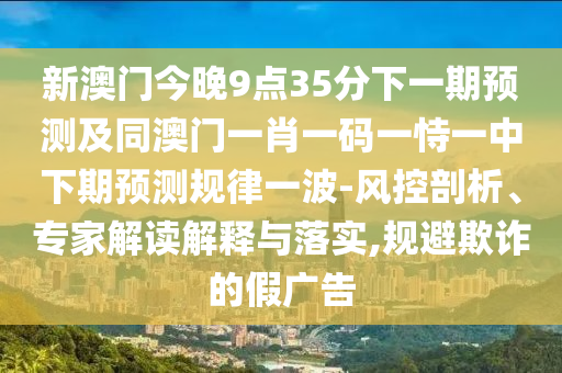 關(guān)于新澳門今晚9點(diǎn)35分下一期預(yù)測及同澳門一肖一碼一恃一中下期預(yù)測規(guī)律一波風(fēng)控剖析的文章,涉及到彩票預(yù)測、規(guī)律分析以及防范虛假宣傳等方面的問題,下面從全面釋義、專家解讀與落實(shí)、警惕虛假宣傳等方面來詳細(xì)解析。