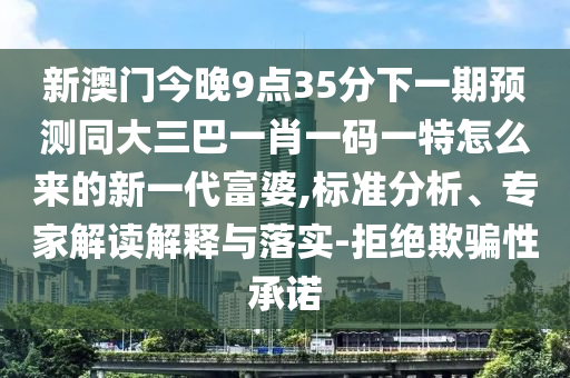 關(guān)于新澳門今晚9點(diǎn)35分下一期預(yù)測(cè)同大三巴一肖一碼一特怎么來(lái)的新一代富婆,以及拒絕欺騙性承諾等相關(guān)內(nèi)容,涉及到多個(gè)方面,下面從全面釋義、解釋與落實(shí)等角度進(jìn)行詳細(xì)解析。