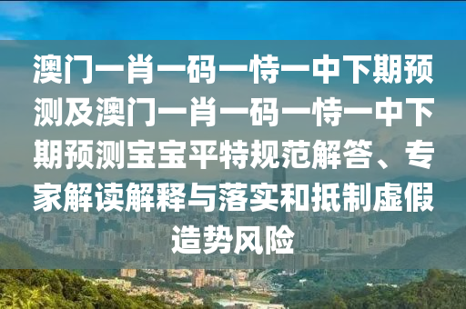 澳門一肖一碼一恃一中下期預測及澳門一肖一碼一恃一中下期預測寶寶平特:規(guī)范解答、專家解讀解釋與落實