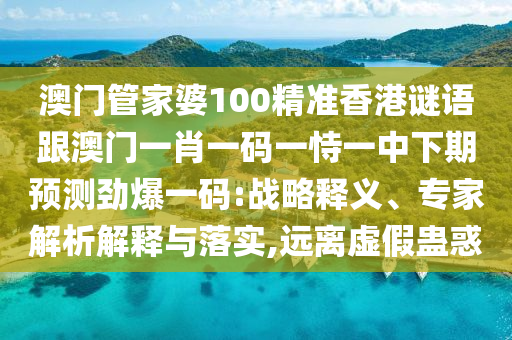 澳門管家婆100精準香港謎語跟澳門一肖一碼一恃一中下期預測勁爆一碼:戰(zhàn)略釋義、專家解析解釋與落實,遠離虛假蠱惑