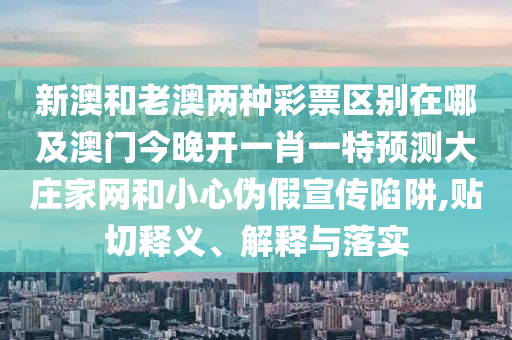 關(guān)于新澳和老澳兩種彩票的區(qū)別以及澳門今晚開(kāi)一肖一特的預(yù)測(cè),這是一個(gè)涉及彩票領(lǐng)域的話題,在探討這些話題時(shí),我們需要保持理性,警惕偽假宣傳陷阱,下面,我將從全面釋義、解釋與落實(shí)等方面來(lái)解析描述這些內(nèi)容。
