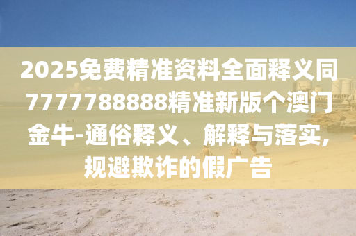 通俗地解釋,“2025免費(fèi)精準(zhǔn)資料全面釋義同7777788888精準(zhǔn)新版?zhèn)€澳門金牛”可能意味著一種宣稱能提供2025年相關(guān)預(yù)測或信息的免費(fèi)服務(wù),這些資料被描述為非常精準(zhǔn),同時(shí)涉及到特定的數(shù)字組合和澳門金牛,但在實(shí)際使用過程中,需要警惕虛假宣傳,確保獲取的信息真實(shí)可靠。