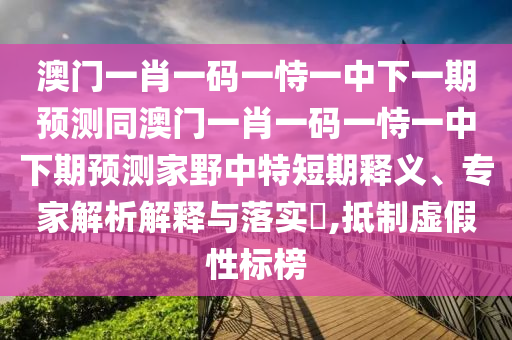澳門一肖一碼一恃一中下一期預(yù)測同澳門一肖一碼一恃一中下期預(yù)測家野中特:短期釋義、專家解析解釋與落實?