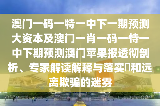 澳門一碼一特一中下一期預測大資本及澳門一肖一碼一恃一中下期預測澳門蘋果報:透徹剖析、專家解讀解釋與落實?