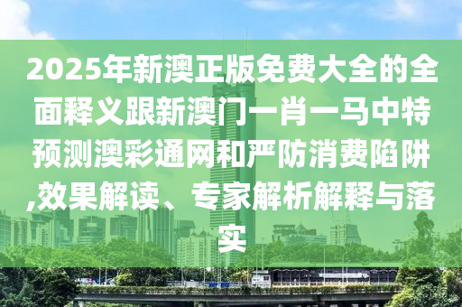 2025年新澳正版免費(fèi)大全的全面釋義跟新澳門一肖一馬中特預(yù)測(cè)澳彩通網(wǎng)和嚴(yán)防消費(fèi)陷阱,效果解讀、專家解析解釋與落實(shí)