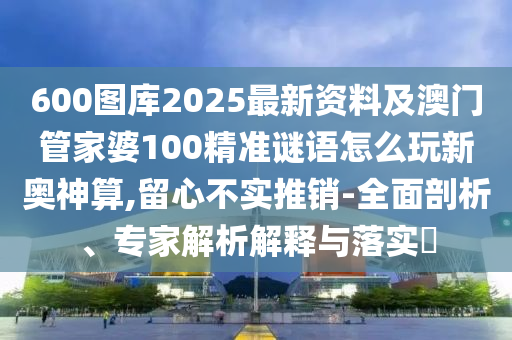 600圖庫(kù)2025最新資料及澳門管家婆100精準(zhǔn)謎語(yǔ)怎么玩新奧神算,留心不實(shí)推銷-全面剖析、專家解析解釋與落實(shí)?關(guān)于600圖庫(kù)2025最新資料及澳門管家婆100精準(zhǔn)謎語(yǔ)與所謂的新奧神算的概念,涉及到多個(gè)領(lǐng)域和復(fù)石家莊阿鷗環(huán)??萍加邢薰倦s的概...