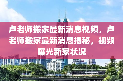 一則關于盧老師搬家的最新消息視頻在網絡上迅速傳播,引發(fā)了社會各界的廣泛關注與熱議,結合新聞報道的視角以及個人見解,本文將探討這一事件背后的故事及其對社會的影響。