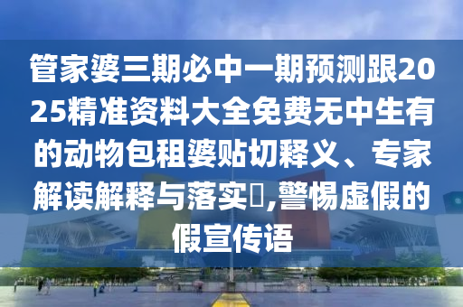 管家婆三期必中一期預測跟2025精準資料大全免費無中生有的動物包租婆的貼切釋義、專家解讀解釋與落實?