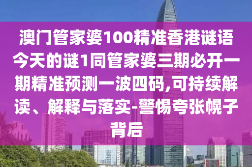 澳門管家婆100精準香港謎語今天的謎1同管家婆三期必開一期精準預(yù)測一波四碼,可持續(xù)解讀、解釋與落實-警惕夸張幌子背后