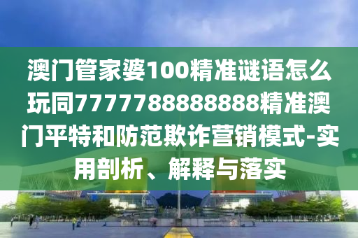澳門管家婆100精準謎語怎么玩同7777788888888精準澳門平特:實用剖析、解釋與落實