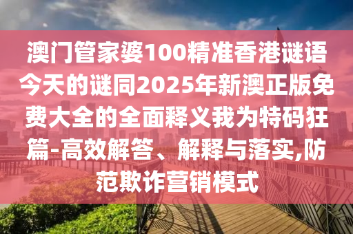 澳門管家婆100精準(zhǔn)香港謎語、新澳正版免費(fèi)大全的全面釋義與高效解答、解釋與落實(shí)策略,以及如何防范欺詐營銷模式