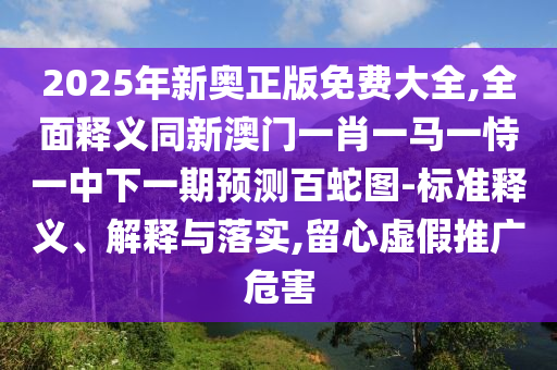 2025年新奧正版免費大全,全面釋義同新澳門一肖一馬一恃一中下一期預測百蛇圖:標準釋義、解釋與落實