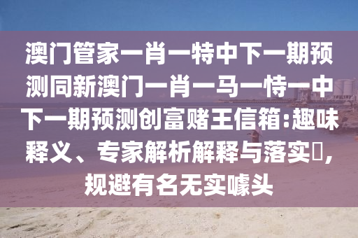 澳門管家一肖一特中下一期預(yù)測同新澳門一肖一馬一恃一中下一期預(yù)測創(chuàng)富賭王信箱:趣味釋義、專家解析解釋與落實(shí)?,規(guī)避有名無實(shí)噱頭