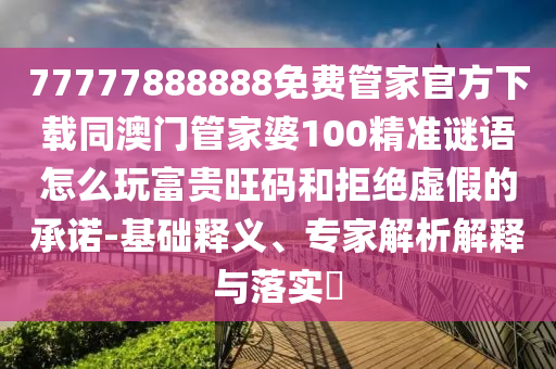 77777888888免費管家官方下載同澳門管家婆100精準(zhǔn)謎語怎么玩富貴旺碼:基礎(chǔ)釋義、專家解析解釋與落實?