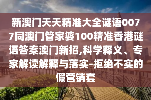 關(guān)于新澳門天天精準(zhǔn)大全謎語0077同澳門管家婆100精準(zhǔn)香港謎語答案澳門新招的科學(xué)釋義、專家解讀解釋與落實(shí)