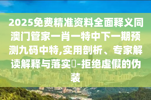 2025免費精準(zhǔn)資料全面釋義同澳門管家一肖一特中下一期預(yù)測九碼中特,實用剖析、專家解讀解釋與落實?-拒絕虛假的偽裝