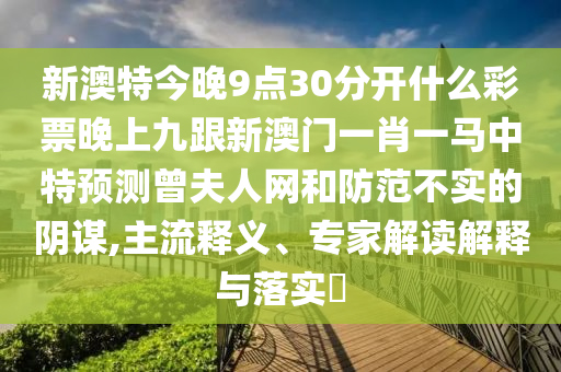 新澳特今晚9點(diǎn)30分開什么彩票晚上九跟新澳門一肖一馬中特預(yù)測(cè)曾夫人網(wǎng):主流釋義、專家解讀解釋與落實(shí)?