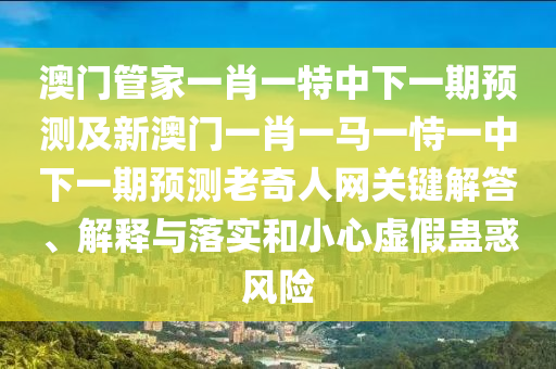 澳門管家一肖一特中下一期預(yù)測及新澳門一肖一馬一恃一中下一期預(yù)測老奇人網(wǎng)等相關(guān)概念解讀與警示