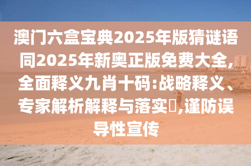 澳門六盒寶典2025年版猜謎語同2025年新奧正版免費大全,全面釋義九肖十碼:戰(zhàn)略釋義、專家解析解釋與落實?