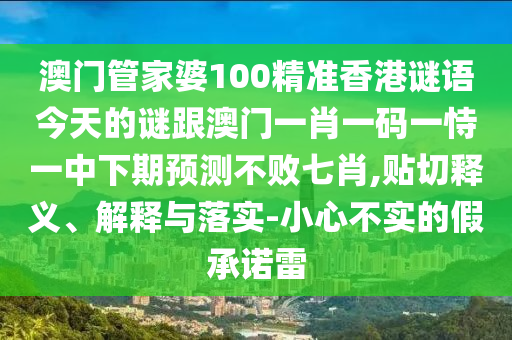 澳門管家婆100精準香港謎語今天的謎跟澳門一肖一碼一恃一中下期預測不敗七肖的貼切釋義、解釋與落實