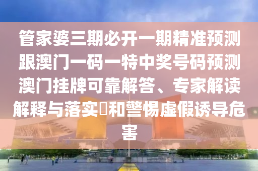 關于管家婆三期必開一期精準預測、澳門一碼一特中獎號碼預測、澳門掛牌及警惕虛假誘導危害的可靠解答、專家解讀解釋與落實